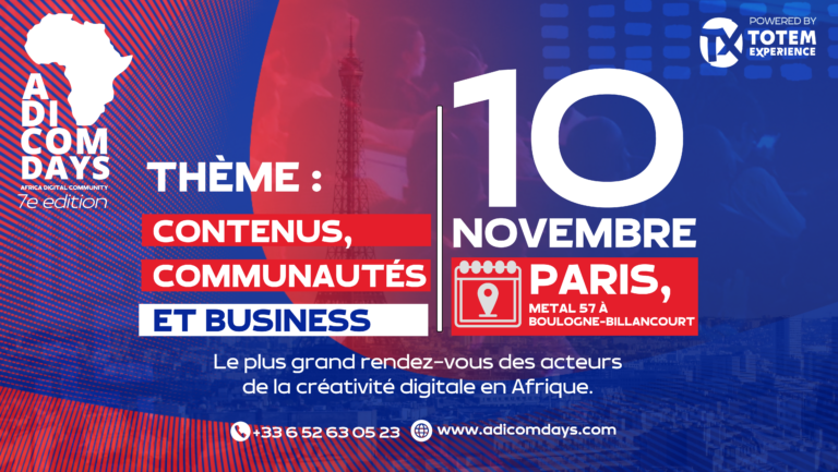 La 7ème édition des ADICOM DAYS se déroulera le 10 novembre 2023 prochain au magnifique METAL 57, Quai Georges Gorse, 92100 Boulogne-Billancourt à Paris. En effet vous l’aurez compris, le plus grand rendez-vous des acteur de la créativité digital en Afrique se déplace en France pour l’édition 2023.